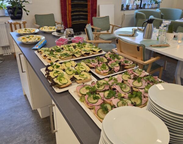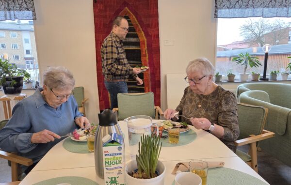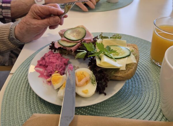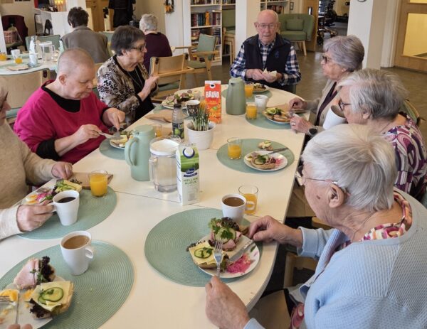 En mysig stund denna morgon med gemensam frukost. Goda smörgåsar, ägg, kaffe och juice – bra start på dagen! Tillsammans på Uttern 65+.